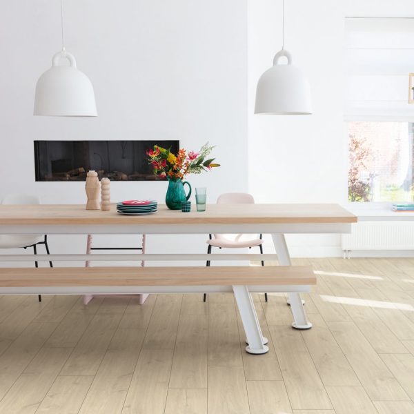 QuickStep CLM CLM1655 sở hữu sắc beige nhẹ pha nâu ấm, mang lại vẻ đẹp tự nhiên, ấm áp và dễ dàng hài hòa với nhiều phong cách nội thất khác nhau. Bề mặt vân gỗ rõ nét kết hợp hiệu ứng mờ nhẹ giúp cân bằng ánh sáng, giữ cảm giác ấm cúng cho không gian mà vẫn đảm bảo sự thoáng đãng, nhẹ nhàng.
