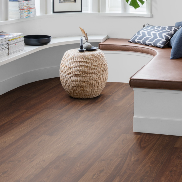 QuickStep Eligna Water EL1043 nổi bật với sắc gỗ óc chó nâu trung tính ấm, độ đậm vừa phải mang lại cảm giác sang trọng nhưng vẫn rất dễ phối hợp với nhiều phong cách nội thất. Bề mặt hoàn thiện oiled nhẹ giúp tăng chiều sâu màu sắc, tôn lên vân gỗ tự nhiên và giữ được vẻ tinh tế, bền đẹp theo thời gian.